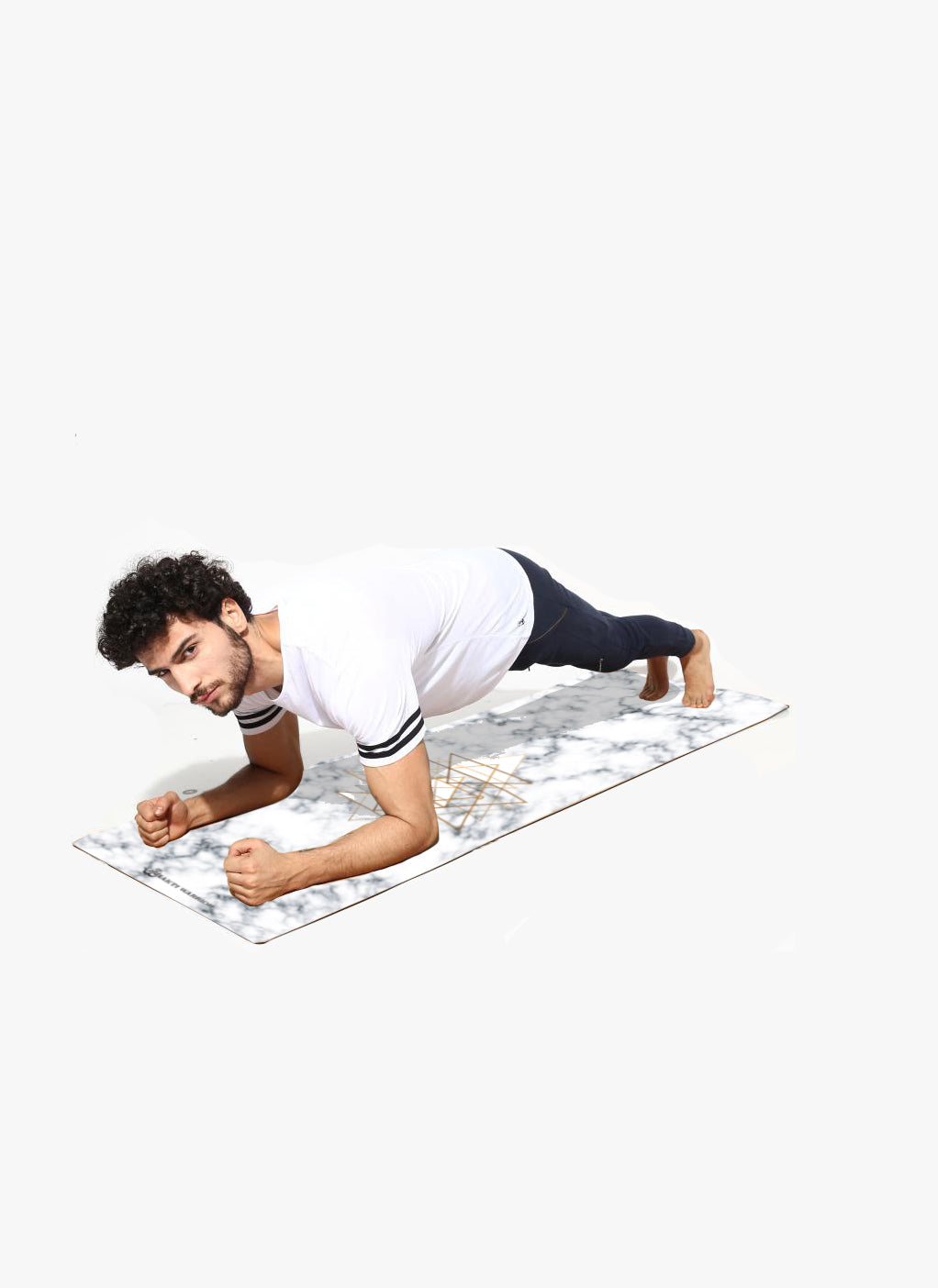 The Sacred Geometry Yoga Mat features a meaningful design symbolizing universal energy, crafted from natural tree rubber and recycled microfiber suede for cushioned support and sweat-activated grip.